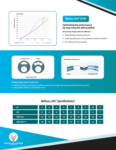 The Victory™ .035 Angioplasty Balloon from Vascular Access Direct is the next generation in peripheral angioplasty performance—featuring a smaller crossing profile for exceptional trackability and reliable lesion access, even in the most challenging anatomies.